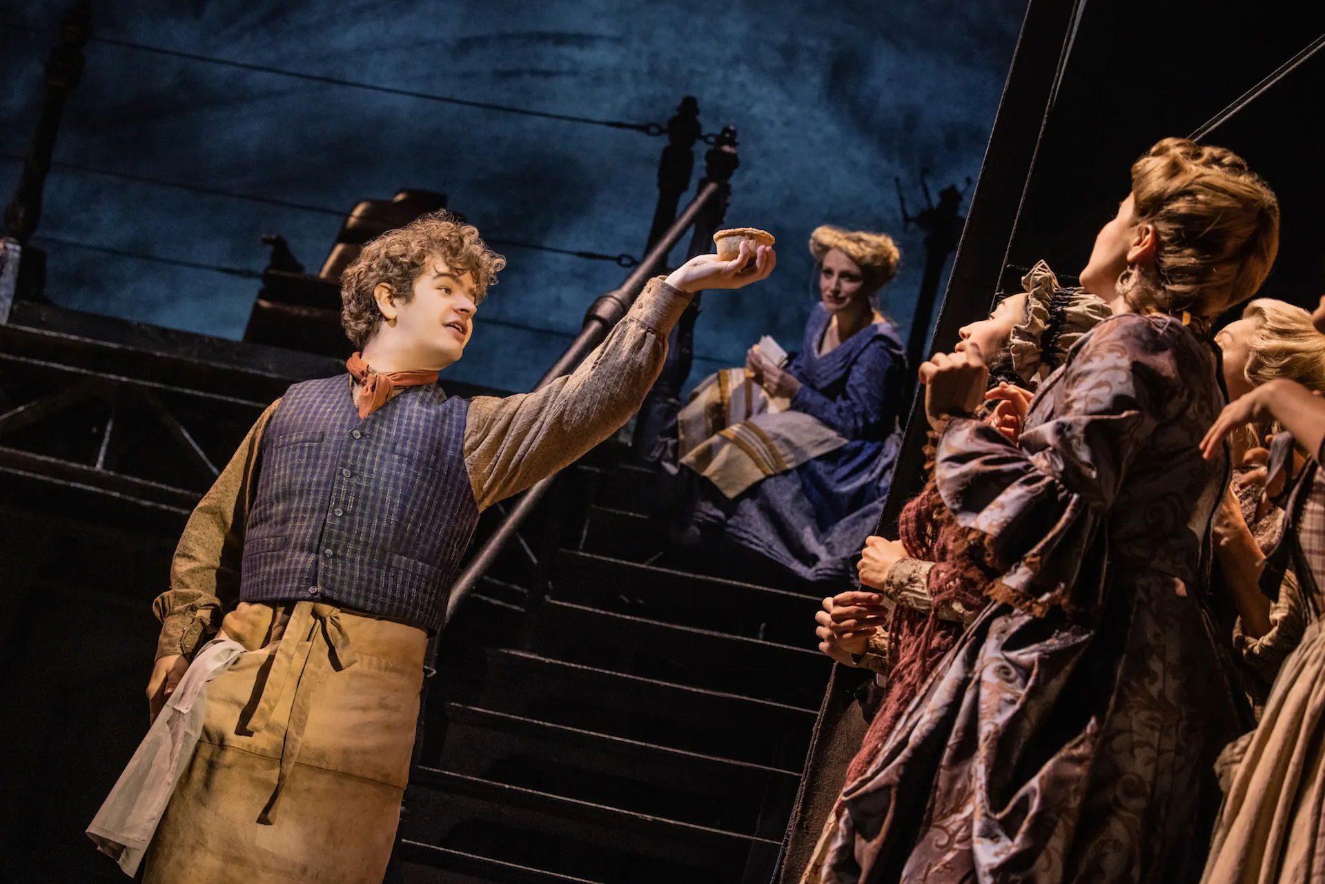 Groban plays the title role: a Victorian barber, né Benjamin Barker, who returns to London after serving 15 years of hard labor for a crime he didn’t commit, hoping to reunite with his beloved wife, Lucy, and their young daughter, Johanna. But as he learns from his practical neighbor Mrs. Lovett (Ashford)—who operates the squalid meat-pie shop below his old tonsorial parlor—Lucy poisoned herself after being assaulted by the same lecherous judge (Jamie Jackson) who sent him away, who is now the guardian of the teenage Johanna (Maria Bilbao). With help from Mrs. Lovett and his friend Anthony (Jordan Fisher), who has fallen for Johanna from afar, he plots vengeance on the judge—and, meanwhile, becomes a throat-slashing serial killer whose victims’ bodies are put to savory use in Mrs. Lovett’s bakery.