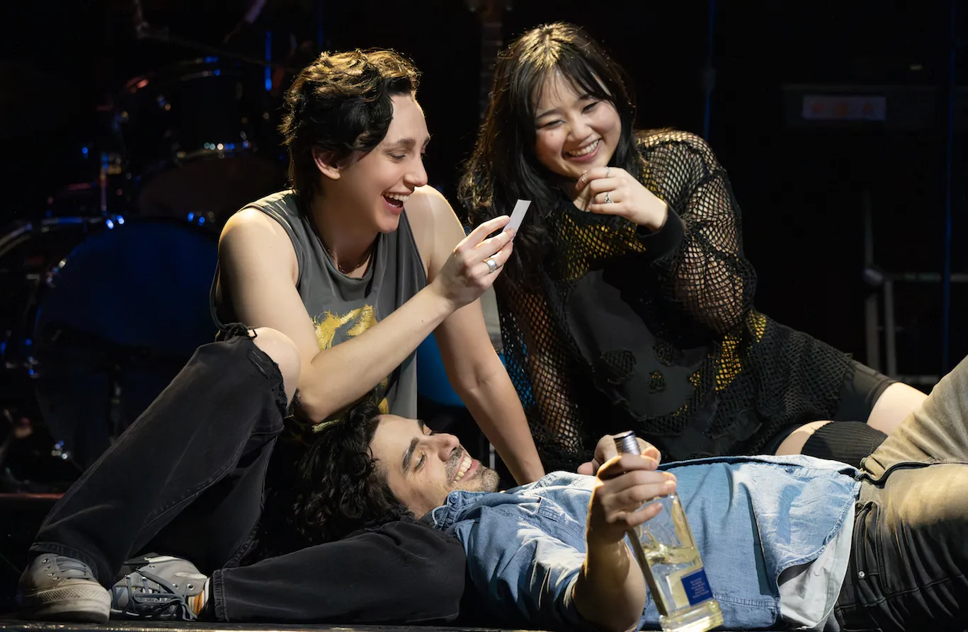 Watching these two women make beautiful music together is heart-melting. Whenever the cast—which includes Damon Daunno as Lila's bass-playing BFF, Dylan, and Helen J Shen's JJ on keyboards—performs songwriter Zoe Sarnak's bona fide headbangers, the show is a delight. Her R&B-inflected numbers for Amy are also solid. Sibyl Wickersheimer's wonderfully evocative dive bar, decked with holiday lights, features onstage seating that brings audiences into the heart of this rock-and-roll romance. Amid the show’s frequently in-you-face action, co-directors Trip Cullman and Ellenore Scott and lighting designer Adam Honoré find ways to craft intimate moments between lovers and family members.