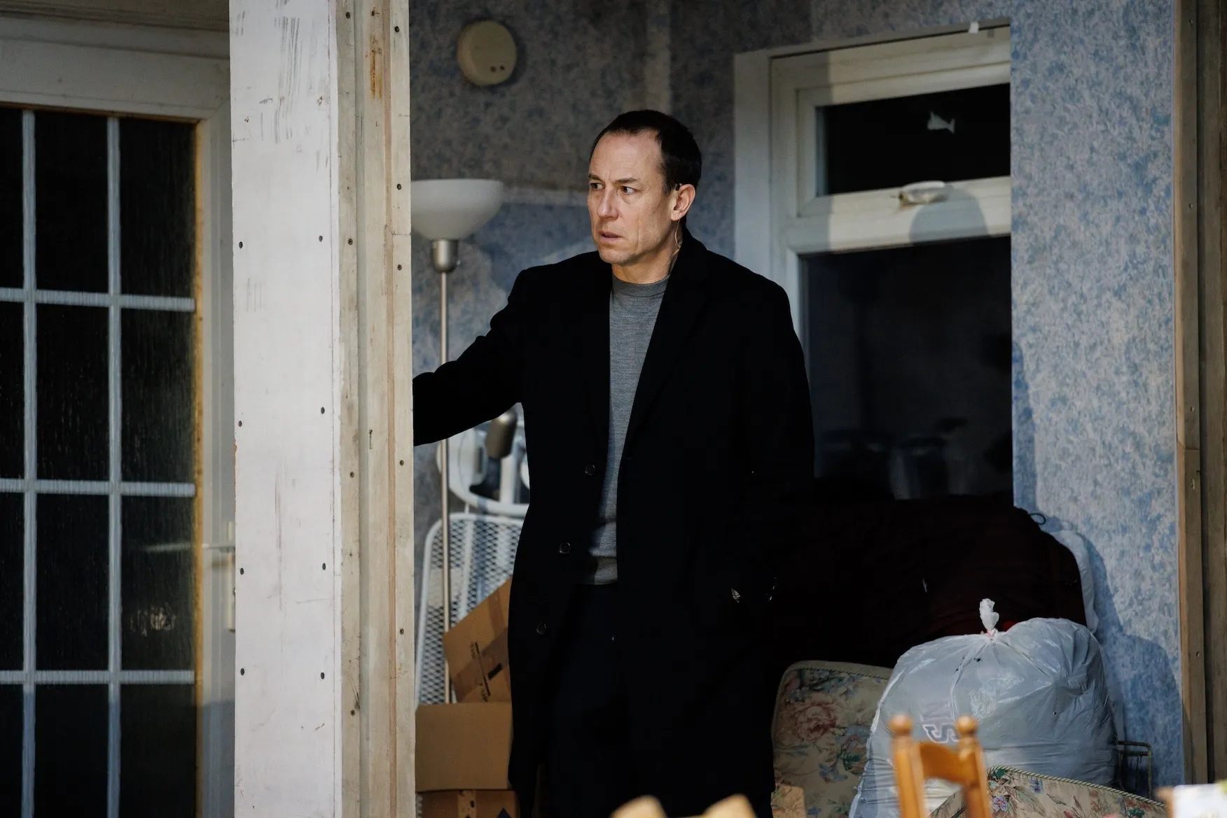Like Robert Icke in Oedipus and Simon Stone in Medea, writer-director Zeldin squeezes the old story into a mold of contemporary psychodrama. Creon is now Chris (Tobias Menzies), who has been working with his new wife, Erica (Lorna Brown), to renovate his late brother’s house; they have opened up the living room by knocking down one wall and installing sliding glass doors in another, filling a symbolically dark and secretive space with equally symbolic sunlight. He also plans to disperse his brother’s crematory ashes outdoors—a plan that does not sit well with his niece Annie (House of the Dragon’s Emma D’Arcy), a bisexual drifter who has gone off the grid and, apparently, her meds. Although Annie’s dad has been dead for years, she insists that he stay inurned in his old home. “They can’t scatter him, he’ll be gone,” she complains; and she is, if nothing else, anti-gone.