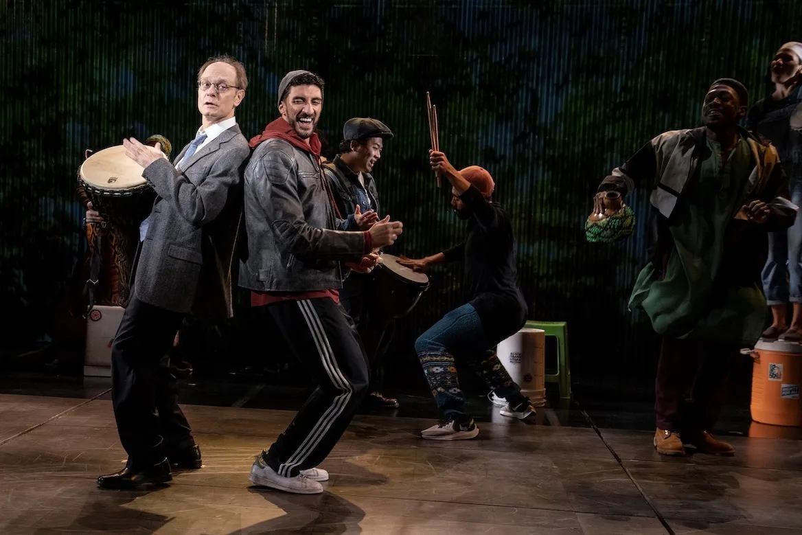 Dear, sweet David Hyde Pierce plays the central role of Walter; Alysha Deslorieux and Ahmad Maksoud are Zainab and Tarek, the lovey-dovey couple whom he discovers to be living in his New York City apartment, and Jacqueline Antamarian is Tarek’s elegant mother, Mouna. Despite gamely earnest performances by these actors and a percussion-playing chorus of 12, and for all the musical’s evident efforts to beef up the non-white parts—Kwame Kwei-Armah is co-credited for the book—The Visitor seems lost and in desperate need of directions. It doesn’t get much help from veteran director Daniel Sullivan, a wizard at directing plays but inexperienced with musicals, or from Yorkey and Tom Kitt’s middling score, which sledgehammers its most obvious points. (Mouna and Zainab sing a duet to the Statue of Liberty: “Hey liberty lady, statuesque lady, what do you hide in that robe?”)