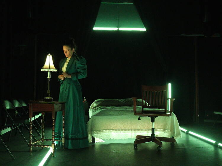 Susannah Millonzi performs a solo version of Charlotte Perkins Gilman’s classic 1892 short story about a woman in the throes of postpartum depression whose madness only deepens when she is imprisoned alone in a shabby room as an ill-advised rest cure. Millonzi created the piece with director by Caitlin Morley; their production, which debuted upstate earlier this fall, now arrives in NYC under the aegis of Bedlam.