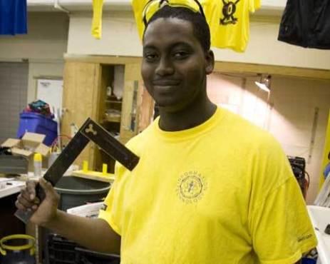 You won’t see this eager-to-please freshman sitting on the sidelines. “I suggested having a shooter instead of a crane; that way we can shoot the balls into our targets,” says Torres. “Plus, the cannon swivels, so you don’t have to move the entire robot to aim.”