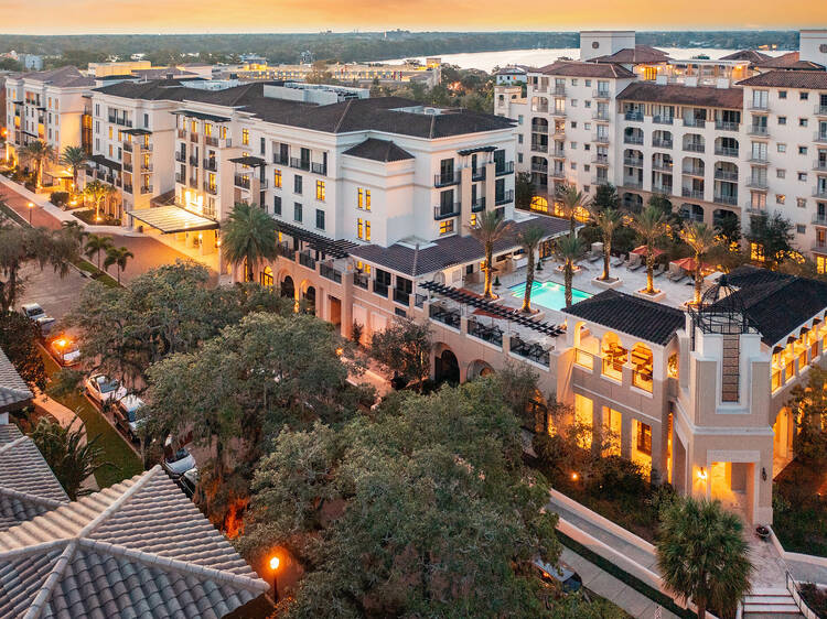 At its heart stands The Alfond Inn, a refined boutique hotel that blends sophisticated hospitality with museum-quality contemporary art. Every gleaming corridor doubles as an art gallery, featuring ever-evolving pieces from The Alfond Collection of Contemporary Art, from the large-scale oil paintings and prints in the lobby to the mirrored geometric works that dazzle in the sunlight streaming through the atrium. With lush courtyards for sipping coffee or wine, a pampering spa, two pools, and an easy walk to Park Avenue’s best boutiques and cafés, you’ll forget about the madness of the theme parks just 30 to 45 minutes away.
