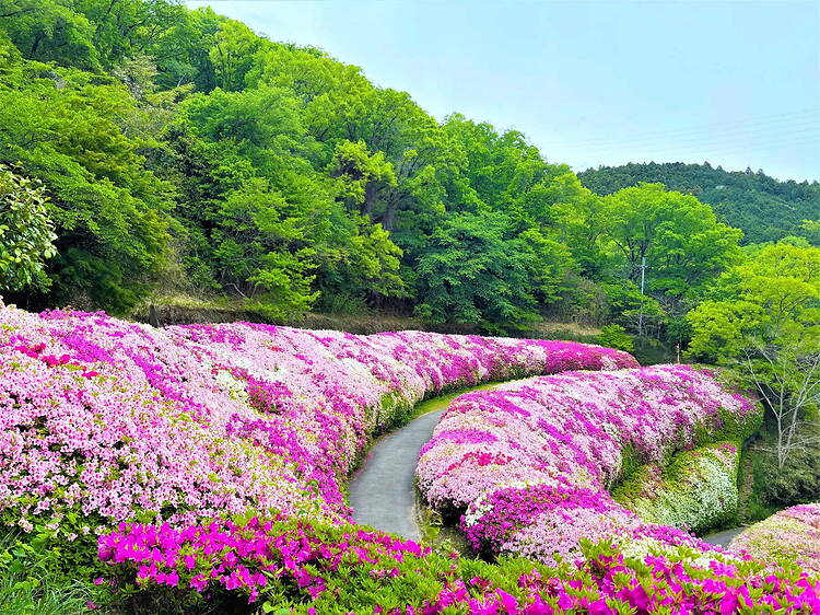 Located towards the east of Osaka City near the border with Nara, this lush mountain is home to one of the region’s most scenic hiking trails. Every spring, the azalea slope at Narukawa Park, found midway up Mt. Ikoma, bursts into brilliant shades of white, red and pink.