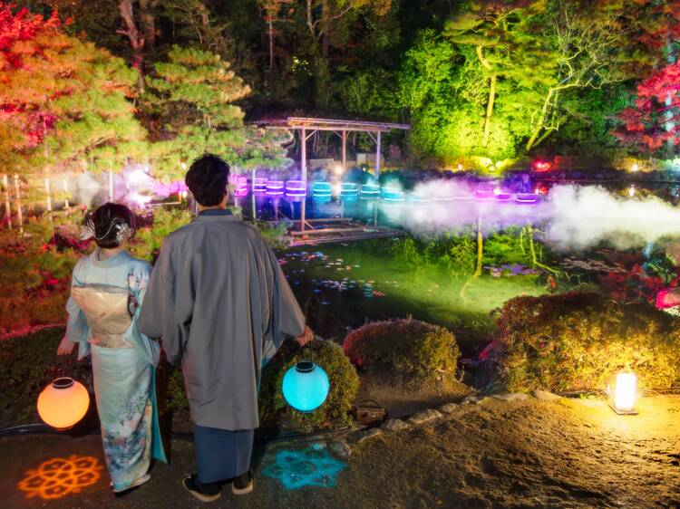 The shrine’s iconic Otenmon Gate and the striking red Daigokuden Hall – both designated Important Cultural Properties of Japan – will be illuminated in vibrant colours. This event also marks the reopening of Daigokuden (from Tuesday December 23), which has been closed for 18 months for repainting and earthquake-proofing works. To celebrate, the hall will feature an interactive element activated via the Naked Distance Lantern (¥500 rental, but free until December 22), allowing you to engage with the site in an immersive way.