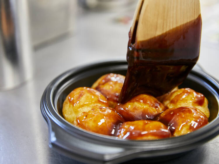 Akaoni makes its takoyaki with raw octopus, cooking it gently within the batter to bring out its natural umami and enhance its distinctive springy texture. The eatery also takes a purist approach to ensure nothing outshines the octopus: the batter contains no pickled ginger or spring onions, and the takoyaki is served without mayonnaise – just a simple brush of sauce or a sprinkle of salt.