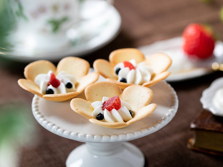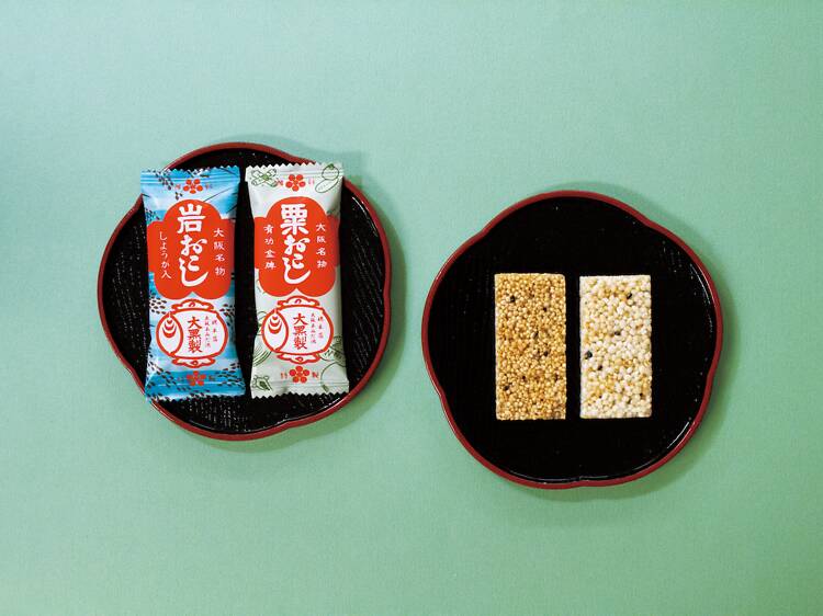 At locations including the Amidaike Daikoku main store in central Osaka you’ll find their classic treats such as the Iwa Okoshi, a crunchy, gluten-free rice snack that’s been enjoyed locally for generations, and the Osaka Hana Langue, a delicate flower-shaped cookie topped with cream and berries.