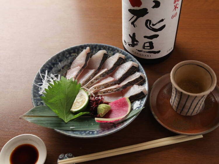 Bringing the flavours of seaside Fukui prefecture to one of the busiest bits of Osaka, this casual soba eatery has been doing a roaring trade in the basement of the Semba Center Building since 2003. The Fukui-born owner turns seafood and buckwheat from his home region into light, figure-friendly dishes from sashimi to coarse-ground soba made fresh every day, attracting a diverse clientele for both lunch and dinner. Udoan’s plentiful selection of Fukui sake can also be paired with specialities such as game meat, available in dishes including a moreish boar and deer hot pot.