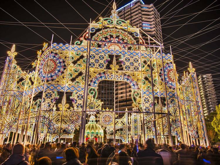 A key highlight is the striking ‘Spalliera’ at Higashi Yuenchi Park, a 50-metre-long, 22-metre-high illuminated wall. The festive atmosphere here is further enhanced by a music stage as well as food and drink stalls, making it the perfect spot to linger and soak in the stunning lights.