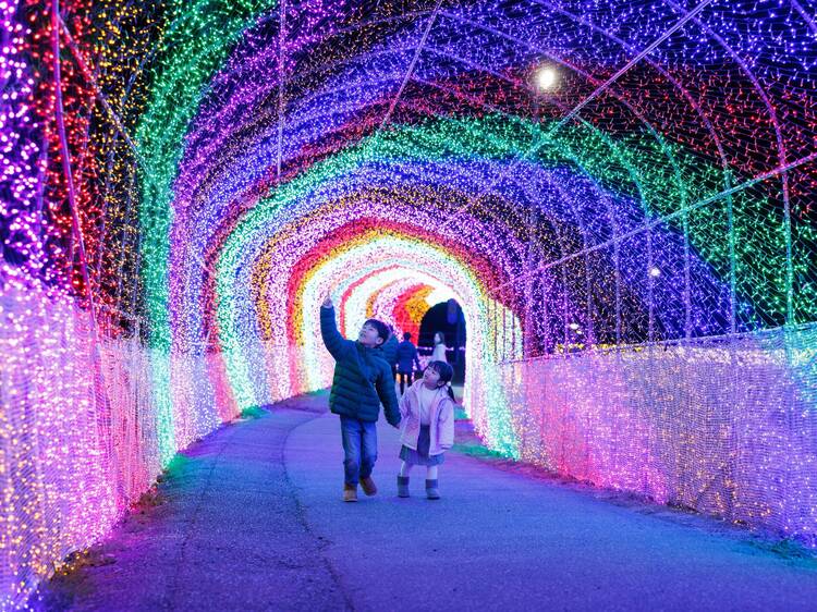For parents looking to enjoy winter illuminations with kids in tow, Harvest Hill in Sakai City, Osaka prefecture, makes for a fun family outing. On selected days (mainly Fridays, Saturdays, Sundays and holidays) until February 23 2026, the sprawling agricultural park comes alive after dark with around a million lights spread across several themed zones.