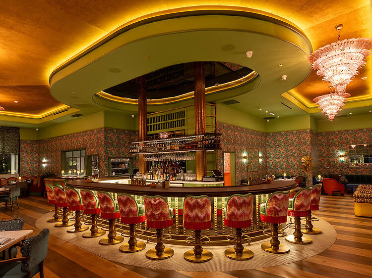 The vibe: Bar Issi’s colorful, playful aesthetic leans maximalist when it comes to design, which was inspired by 1970s glamor seen along the Italian coast. See and be seen here, as they say, from a table in the dining room or from one of their coveted and cute bar seats, where you can take in the latest Palm Springs fashions from visiting bachelorette parties and local (very hip) retirees.