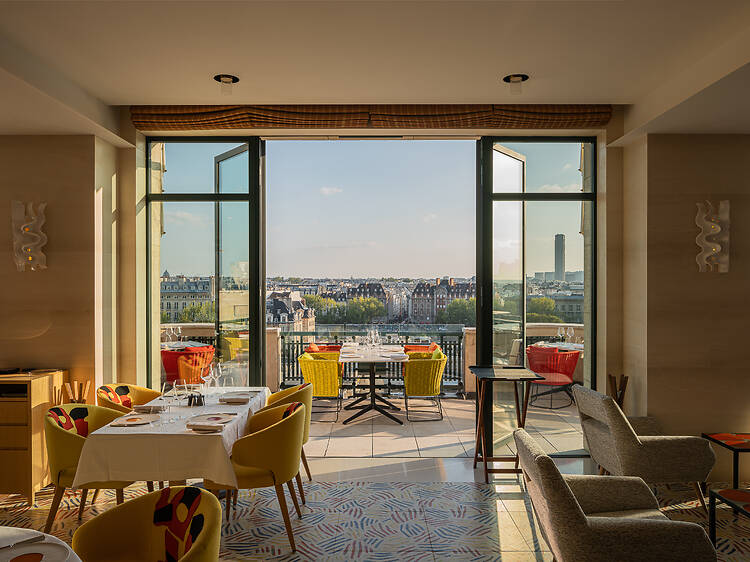 Its sun-catching interior in pale tones, from sand to off-white, perfectly matches the building’s monumental Art Deco façade. In terms of décor, it feels like a design museum: you can literally sit on furniture by Maria Pergay or Charlotte Perriand, facing canvases by Sonia Delaunay.