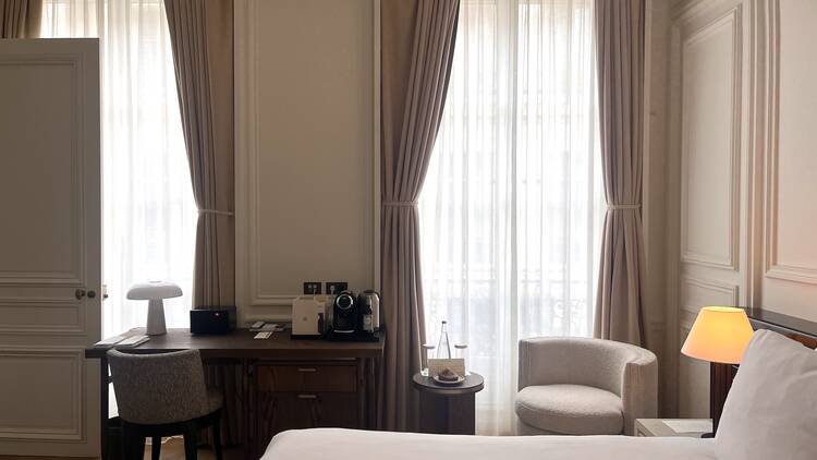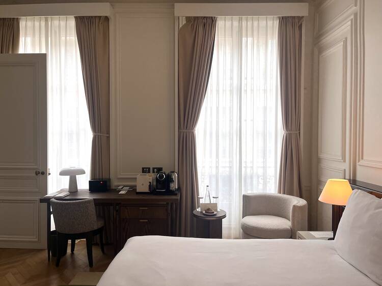 The building that Maison Delano calls home is a 1730s palace that was once the home of Augustin Blondel de Gagny, master of ceremonies to the French king. Step in off the street and the watchword is quiet luxury, with tasteful white-and-black interiors and a tranquil courtyard. The intimate, boutiquey vibe is partly down to the hotel’s relatively small size, with 56 rooms and suites across the upper floors.