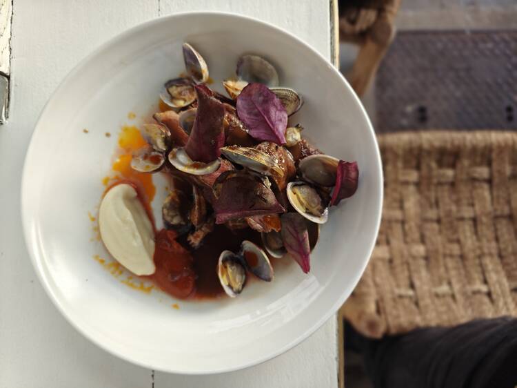 The monkfish is immaculate – killed using the Japanese fish-slaughtering technique ikejime, which involves letting all the blood drain to maintain the quality of the meat. It’s perfectly cooked with a butter sauce and chicory for a harmonious bitterness. But don’t leave without trying the La Trinquelinette jam, La Quiberonnaise sardines and Taka & Verno cheeses.
