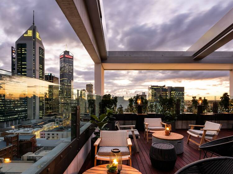 Boutique at its very best is what you’ll experience at this designer hotel by the Swan River. The rooms are stylish and sleek, with spacious bathrooms bathed in black marble and featuring a free-standing bath or rain shower. Before melting into your king-sized bed, set your sights on the horizon of Perth’s sparkling city lights at the 18th-floor bar, Rooftop at QT. Likewise, Santini Grill awaits to serve you flavours of the Mediterranean to suit Perth’s consistent sunshine. Think cacio e pepe clam pizza and a tiramisu recipe dating back to 1988. But if getting out and about is more-so your thing, you’d be pleased to know that you’re in very close quarters to some of the best restaurants in Perth, as well as the buzz of Murray Street Mall quite literally across the road.