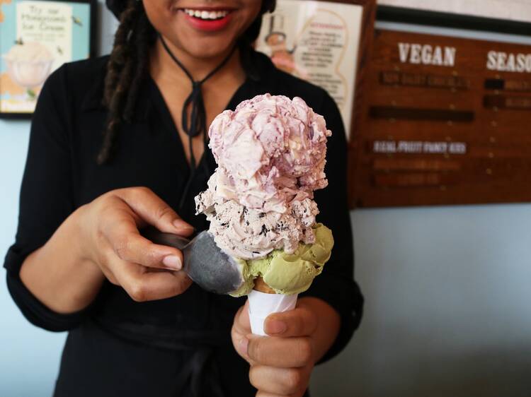 The star of the menu is, of course, the ice cream. There are more than 20 flavors on the menu (many of them vegan), not to mention limited-time varieties that come and go seasonally. Options range from the classic, like coffee, pistachio and vanilla bean, to the unexpected, like caramelized banana, honeycomb and almond butter cherry. Even more exciting is the ample selection of toppings, which runs the gamut from house-made mint syrup to malted milk powder.