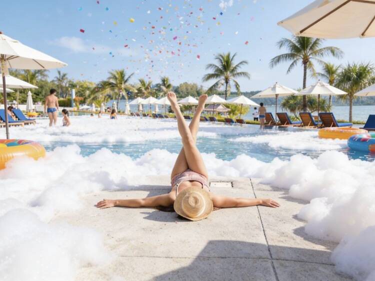 With giant bubble baths, flying suds and party folks laughing as they duck and dodge globules of foam, Pullman Phuket Panwa Beach Resort once again delivers on the promise of a fun-filled Sunday. All thanks to the massive cannon shooting out cloud-like, organic and non-toxic foam. Simply head down to the pool overlooking the glistening Andaman Sea and enjoy sounds of house DJ Ivan Polce adding to the frothy fun. Cueing disco-house tracks and sunkissed classics, he’s the driving force behind that thumping four-on-the-floor beat that has you bouncing around. Oh, and if you don’t want your stomach to growl louder than the soulful vocals of the loop-heavy tracks, you can order briny seafood towers and juicy tomahawk steaks right to your poolside cabana.