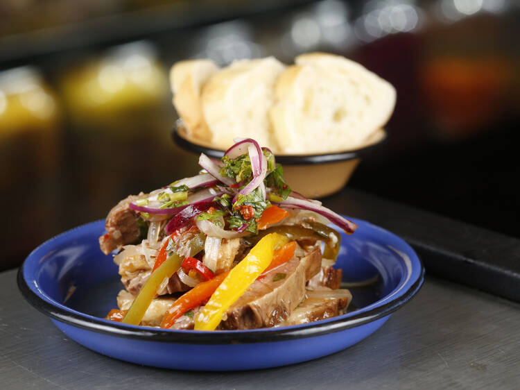 “Uma homenagem à carnavalesca Rosa Magalhães e o Salgueiro, com o "Da Carne-Seca a Notre-Dame de Paris": carne-seca no molho de carne, com vinagrete de couve e tangerina e picles de abóbora, acompanha pãozinho (R$ 35). O prato é inspirado no samba-enredo de 1991 da escola tijucana, quando Rosa Magalhães era carnavalesca. A ideia do prato surgiu de uma conversa com o historiador Luiz Antonio Simas, amigo e frequentador do bar”, conta Antonio Carlos Laffargue, o Toninho.
