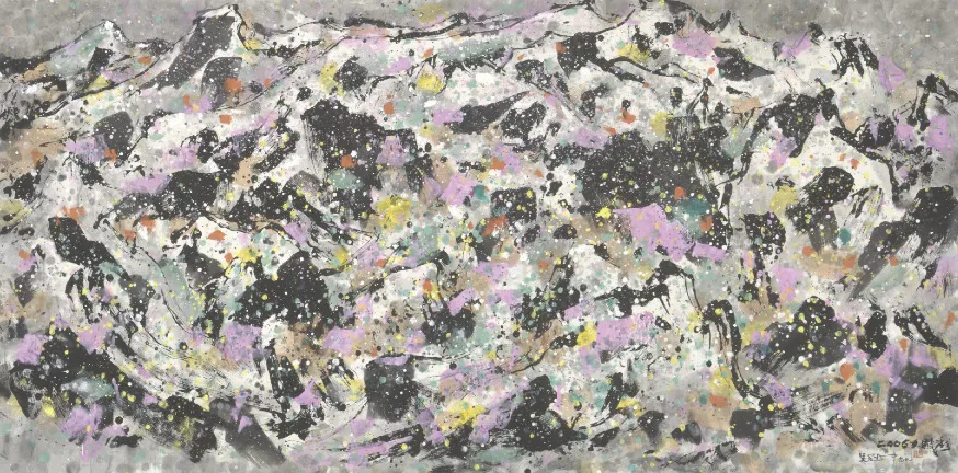 The Yulong Mountains at Sunset (2006) remains one of the most prized (and popular) paintings from the artist, whose works were marked by a mix of painting styles: the semi-abstract, the realistic, and the fully abstract – this one being the latter.
