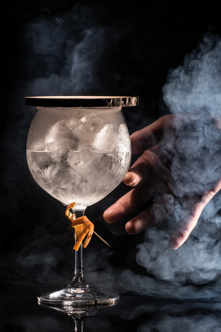 Everyone can make a G&T but making a good one is not as easy as it sounds. I wanted to create a drink that shows how small details can make a huge difference. I call it the reverse gin and tonic. Usually, people pick the gin first and then choose a tonic – but I take the opposite approach. I make my own tonic with the same botanicals of a gin and mix one part of gin to three parts of this tonic. I give carbonation to the whole drink, dehydrate some of the citrus botanicals and set them on fire, finishing off the drink with a layer of gentle, zesty smoke.