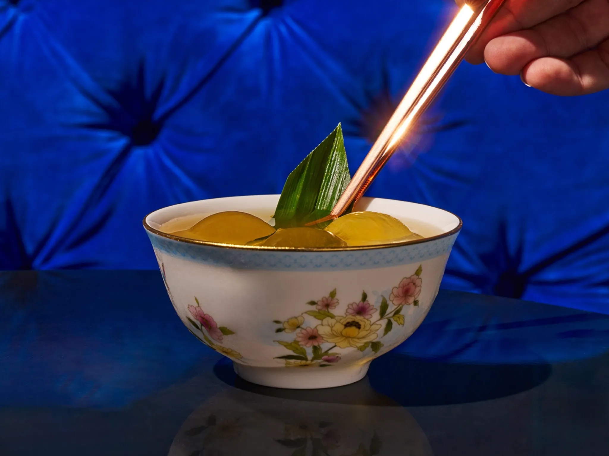 You’ll be served a delicious frozen punch – a rendition of the Daeng Punch – as a palate cleanser before the desserts roll in. We like the chamomile mascarpone kochi yuzu tart and the matcha green tea namelaka cream on black tea cones the most. The latter comes in the form of a miniature ice cream cone, and is as eye-catching as it is tasty. Round things off with the pandan and lemongrass-forward Kusu Island Punch Semifreddo, a spin on another of the bar’s sake and gin-based punches.