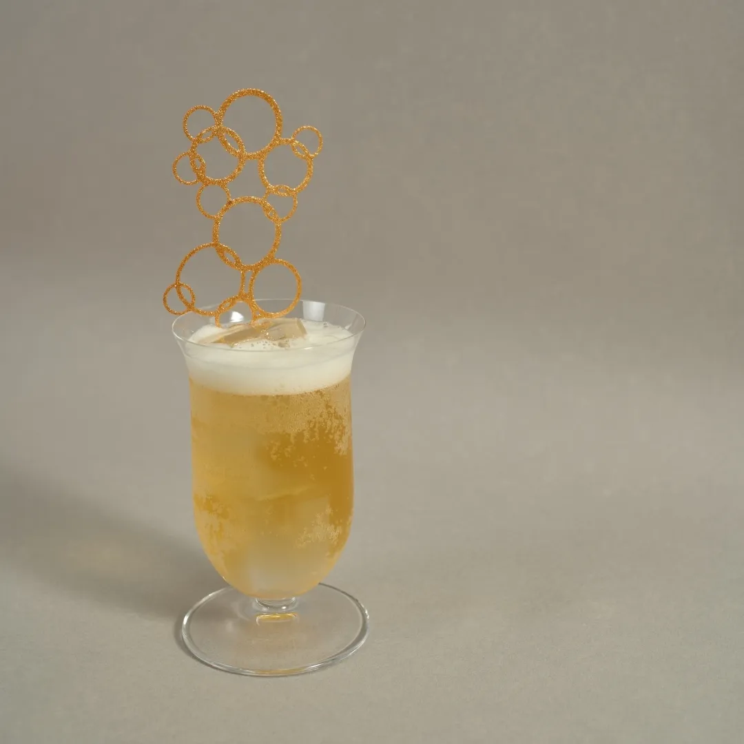 Try the Great To Ma To to start. Inspired by white wine, there are distinct notes of grape, though the drink doesn’t actually contain any. Instead, it’s Jack Daniel’s old no. 7, sencha, yoghurt, plum, and cherry tomatoes that reproduce the acidity, sweetness and tannic quality of grapes. On the side is a shoyu-infused Hokkaido scallop tartlet topped with ikura, a nod to how white wine is paired with seafood. Have a bite then sip on the drink again – you’ll now find it slightly different with more body.