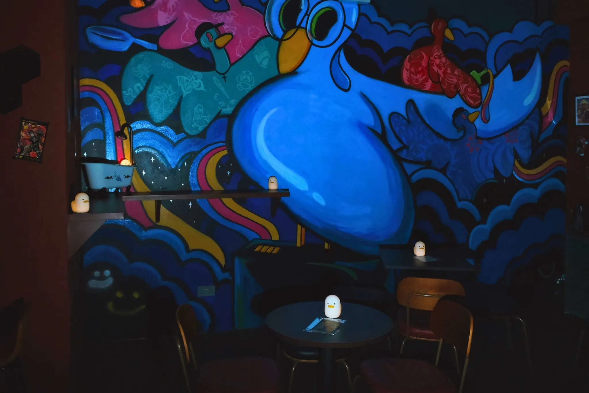 The vibe Fun, wacky and casual. You’ll find everything from duck-ified posters of pop-culture references on the walls to adorable duck lamps lining each table. Stream in after 9.30pm for a buzzier atmosphere.