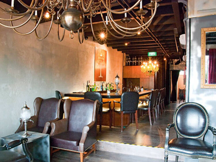 A swish labour of love overlooking the river, Absinthe Artisan is the blink-and-you’ll-miss-it brainchild of Goh Hock Soon, who’s carved a museum to this resurgent tipple below a massage parlour. There’s no drinks list; instead you get an idiot’s guide to absinthe from barista Ivan Lee and an offer to taste-test the showpiece attraction – the la louche ritual, wherein an ornate fountain transforms the notorious liquor from emerald to an iridescent cream-white.