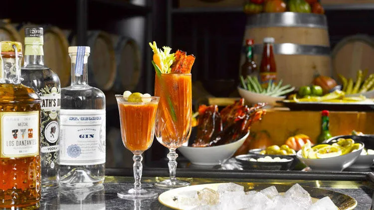 Fuel up at Manhattan's champagne brunch and remedy the hangover with their build-your-own Bloody Mary cocktail cart. The seafood bar bears an impressive spread of fresh oysters, ceviches and crustaceans, but what you really need right now would be a good dose of protein and fat. Think New York strip steak, smoked foie gras and pulled pork sliders. Take your time, brunch runs from 11.30am to 3.30pm.