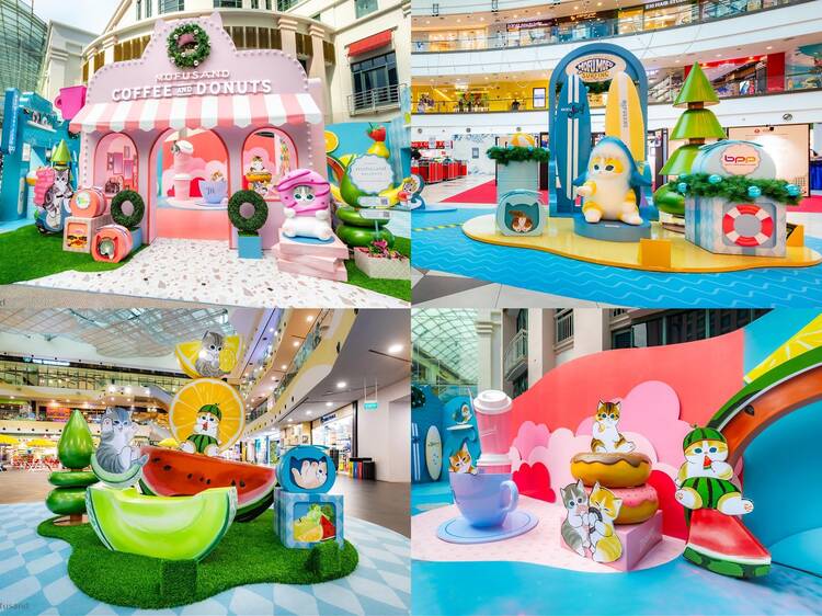 ‘Tis the season of cat-mas indeed, with a whopping 17 CapitaLand malls all decked out in larger-than-life Mofusand installations. These follow three themes based on popular Mofusand merchandise series: ‘Board Shark’, ‘Fruit Meow’, and the latest ‘Coffee and Donuts’. While some malls may share the same theme as others, the decor of each will differ, so you’ll have to go on a mall crawl if you’re planning on experiencing it all.