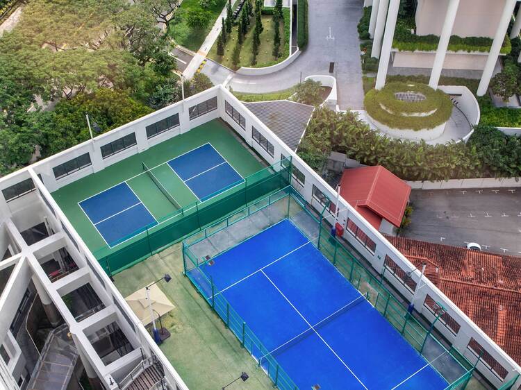 But if you’d rather play in peace (and style), there’s now a more exclusive option – a luxurious set of courts tucked inside one of Singapore’s most established five-star hotels. And yes, it even includes access to the steam, sauna, shower and changing facilities too.