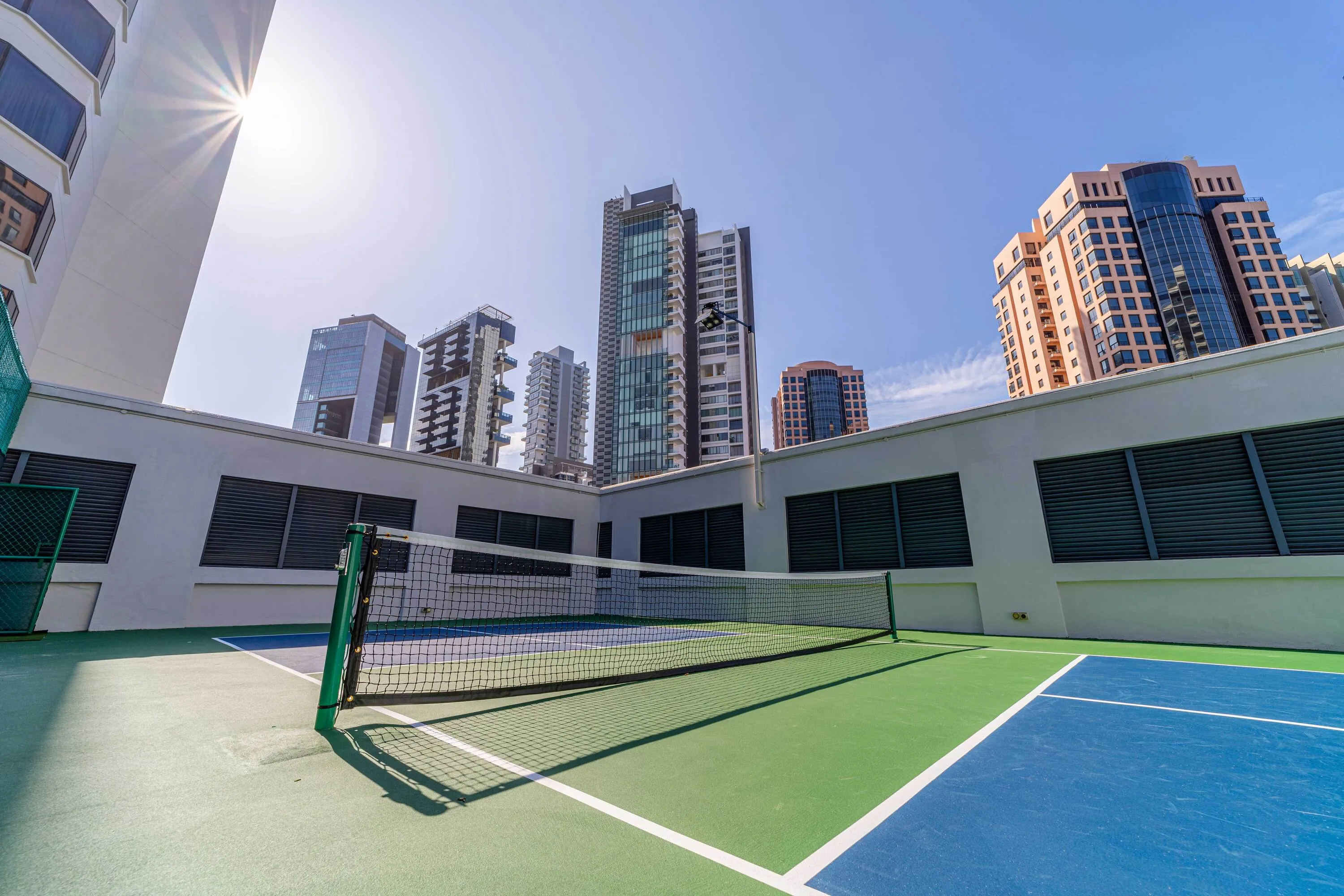 The courts are open daily from 7am to 10pm, with the last booking at 9pm. To find the courts, head up to Level 3 of the hotel to register. You'll then be directed to climb up the stairs to the outdoor recreation floor.