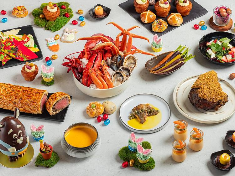 Verandah Rooftop Rotisserie keeps it fun and family-friendly this Easter. A three-hour Sunday Roast is the heart of the experience, featuring 75°C slow-roasted Côte de Boeuf with Yorkshire pudding, wood-fired pizzas, a seafood-on-ice section with Boston lobsters, and of course, in the spirit of Easter, an egg station serving everything from poached eggs to omelettes upgraded with crème fraiche and Avruga caviar. There are plenty of activities to keep the young ones entertained. The highlight? A mermaid show at the rooftop infinity pool, followed by a meet and greet session. The kid's pool will also be open throughout the brunch, and to make watching the little ones easier, adults can enjoy a selection of grilled items at the outdoor barbecue station.