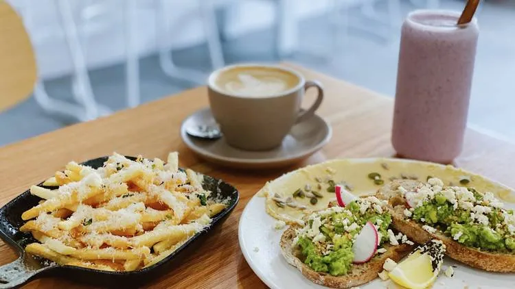 The food served features a selection of Ashley’s favourite dishes (“these are things that I like to eat”). Try the smashed avocado on sourdough toast ($18), dressed with aromatic dukkah and sunflower seeds for crunch; waffles with fried chicken thigh ($18); or the Breakfast of Champions ($24) with trimmings of pork sausage, bacon, poached eggs, grilled tomatoes, and more. Sides of truffle fries ($12) and chicken wings (from $10) drizzled with honey butter are also worth an order.
