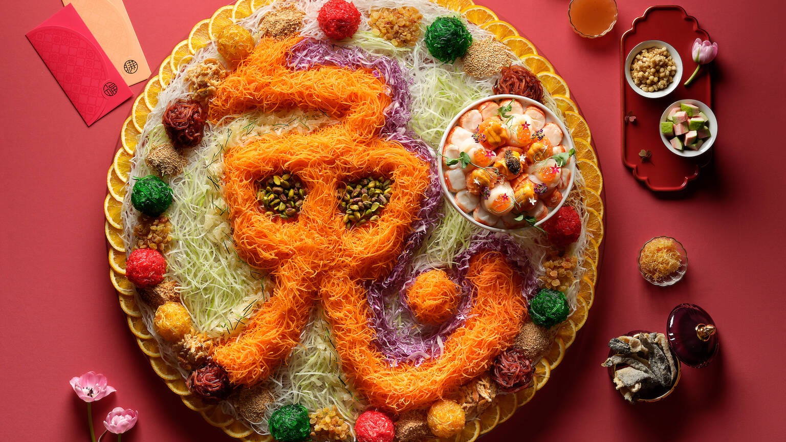 Impress the relatives this year at the Michelin-recommended Man Fu Yuan at InterContinental Singapore. It’s got a range of eight prix fixe menus available from January 6 to February 16, catering to various group sizes and appetites. The fuss-free Blissfulness menu ($938) is good for five, and comes with quintessential New Year dishes like the Abundance Treasure Pot with over 18 premium ingredients – think abalone, rock lobster, sea cucumber, and the like. You and your family can also toss to the new year with Man Fu Yuan’s Fortune yu sheng with classic toppings of salmon sashimi and golden wafu dressing. For an even more luxurious celebration, opt for the seven-course Harvest menu ($1558 for five), where you’ll be treated to a dazzling array of dishes including double-boiled sakura chicken soup with fish maw, steamed Mandarin Perch fillet, and braised rock lobster bisque. The feast continues with à la carte favourites like roast suckling pig, applewood-smoked Irish duck, and more.