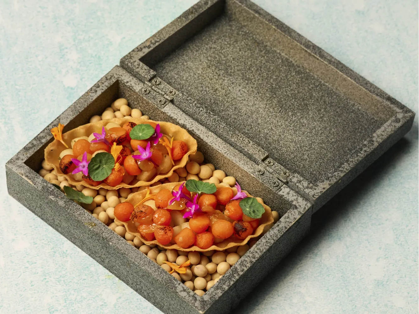 Opt for an amuse bouche or two if you so fancy. The BBQ carrot with candied orange peel in a spring roll shell has a pleasant char, but if you’re going to pick just one item, we’d recommend going straight for the cured scallop on rice crackers. Drizzled with white ponzu and sudachi (Japanese lime), this bite-sized treat is bursting with umami.
