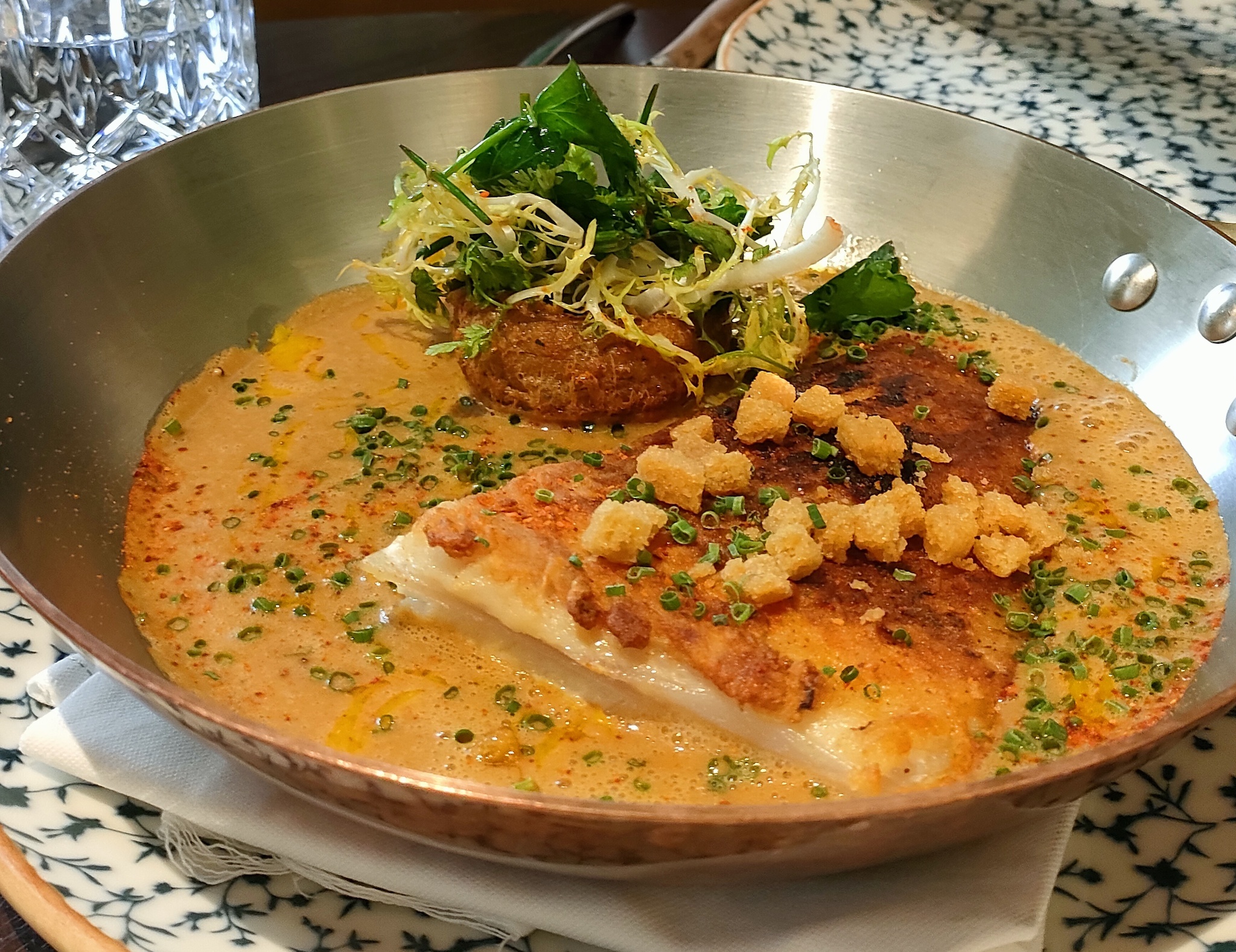 Clos Pasoh is all about reinterpreting classic French plates in modern ways. Pulling inspiration from countries on the Strait of Malacca, the locale-driven yet boldly innovative plates are peppered with Pacquelin’s eccentricity. Take the Soupe à l’oignon gratiné au vieux Cantal ($26) where he playfully repackages the comforting classic of French onion soup into a dumpling vessel oozing with crispy onions and Cantal cheese. Then there's the immaculate Provençale classic of Aile de raie, artichaut en tempura, réduction d’une soupe de poisson ($40, pictured above). This dish is a riff on the local sambal stingray, except Pacquelin pan-sears the wing of a North Atlantic skate and serves it with a robust fish soup reduction and crisps of artichoke heart.