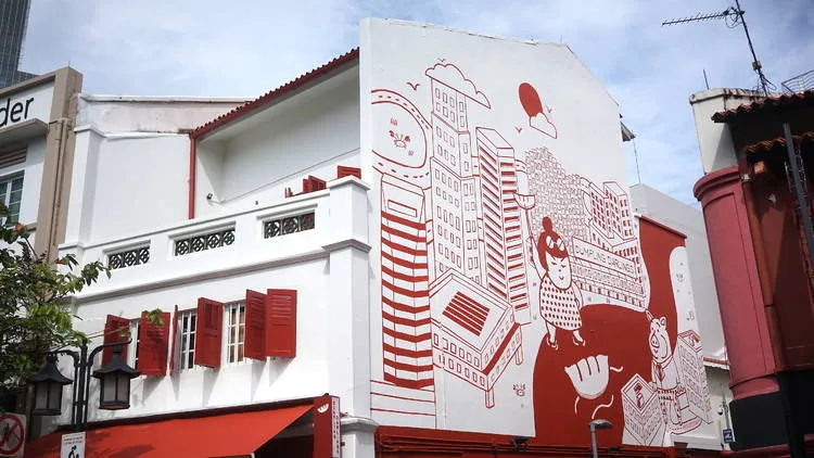 Choose to wash it all down with familiar classics of the floral longan osmanthus pu-erh ($6) and refreshing salted plum with wolfberry pu-erh ($6), or share a toast with craft beers (from $11) on tap and a fruit-focused cocktail ($18) selection of cherry cognac, pineapple rum, and more. A curated list of natural wine is also available by the bottle (from $80). Before heading off, remember to peep the giant mural that’s located at the side of the shophouse that Dumpling Darlings occupies. The adorable artwork features the sights from the neighbourhood, alongside the eatery’s two adorable mascots: Jo and Pork Chop.
