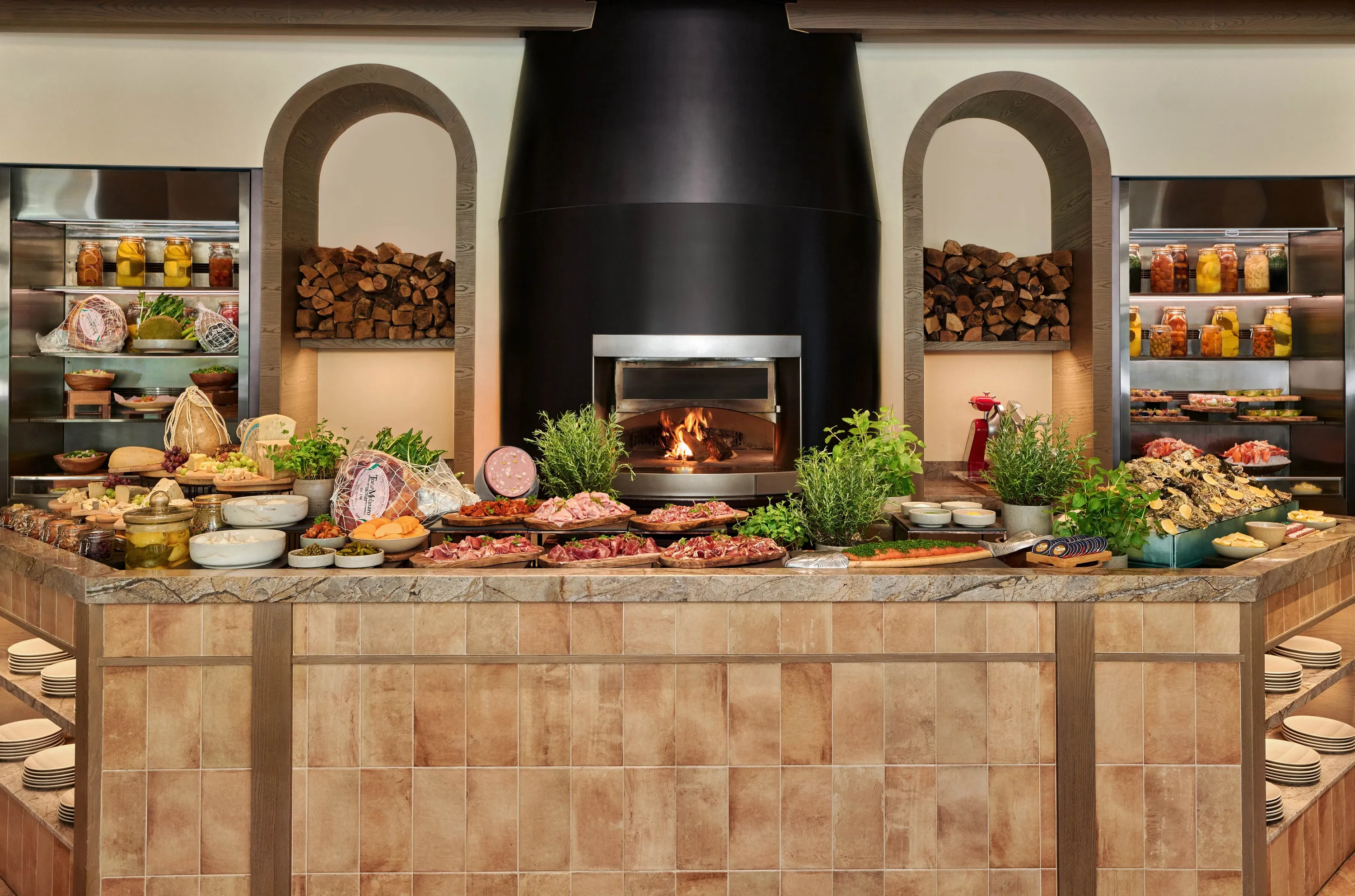 Even if you’re bursting at the seams, you simply have to make room for dessert. Or at least, don’t miss the fresh trays of tiramisu brought out from the kitchen and scooped out right before your eyes. There’s also the traditional gelato cart and a table spread of sweet treats with everything from macarons, to tarts and eclairs.
