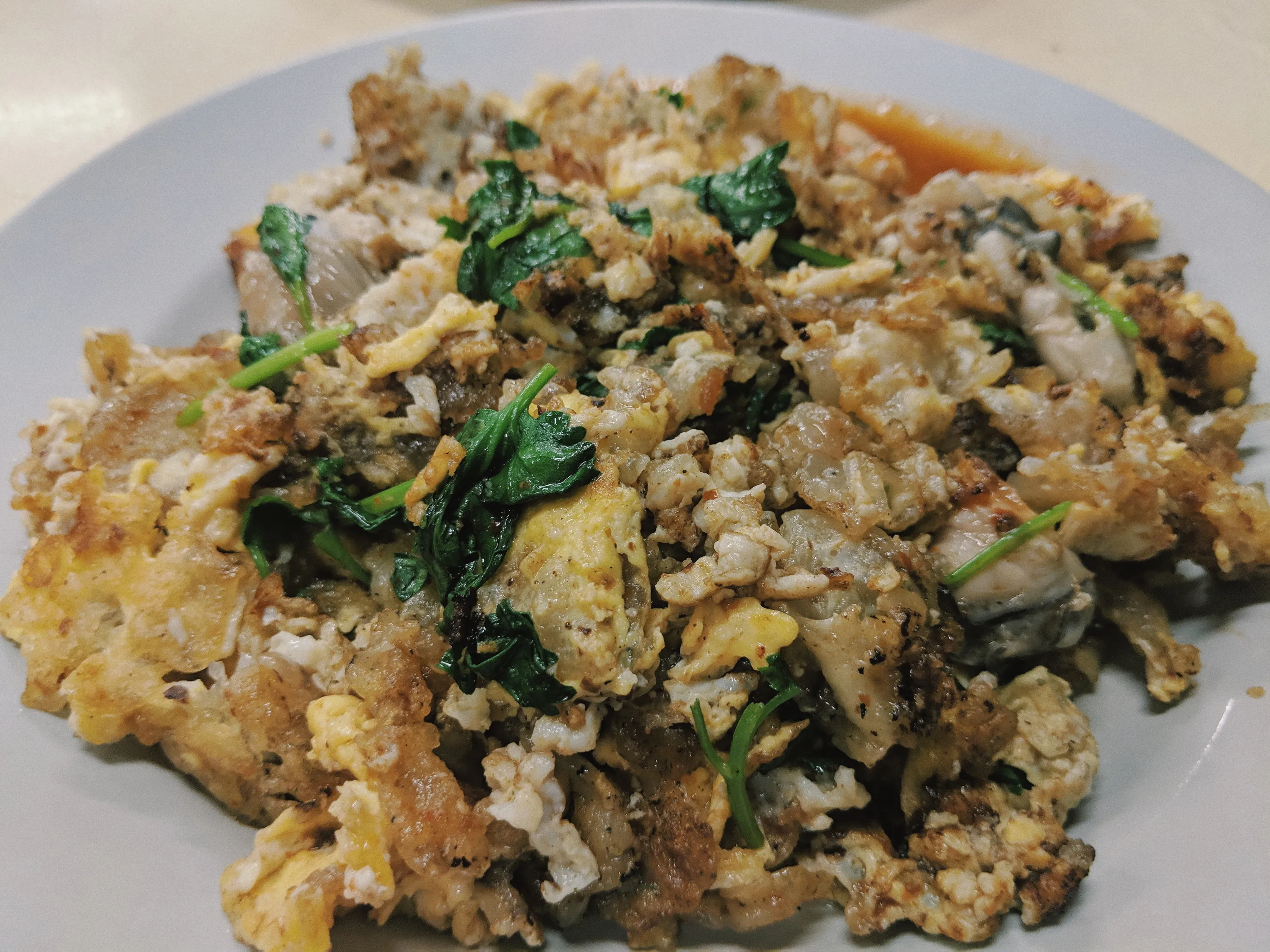 Somewhere in the northeastern suburbs of Hougang, in an ordinary coffee shop, you’ll find an elderly couple toiling over giant heated woks side by side for hours on end, churning out plate after plate of fragrant and morish fried kway teow and oyster omelette. After over 30 years in the business, Lim Suan Eng and her husband Ong Lim Chong run a tight ship with ease. During service which officially starts at 11am, although they report to the shop as early as 8am, their tasks are simple: he fries up the signature oyster omelette while she handles the fried kway teow, while also taking the orders.
