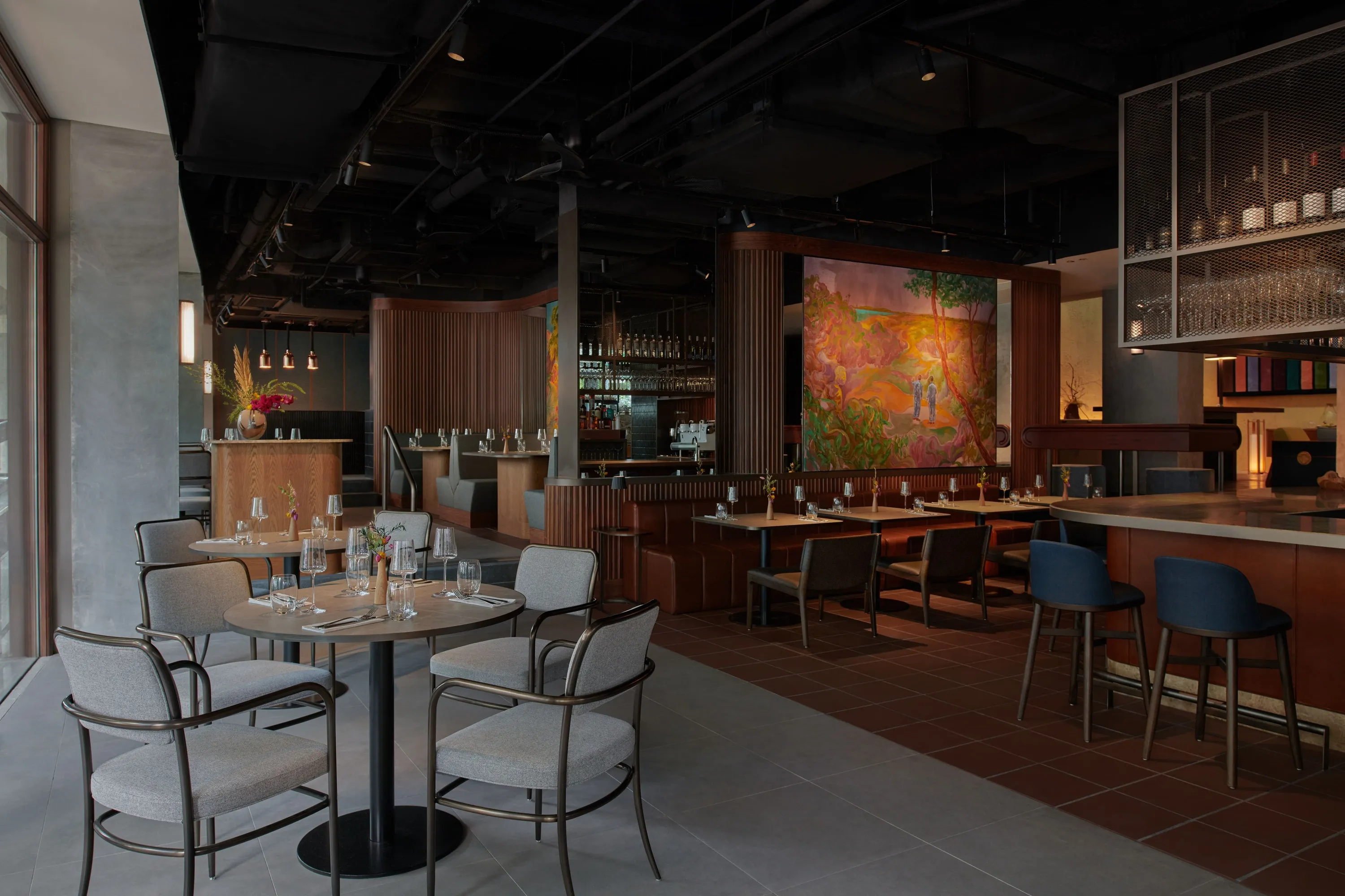 A word on its interiors – the 71-seater takes inspiration from Art Deco banking halls of the 30s, using original building materials like timber but mixing it up with trendy leather lounges and marble finishing. The open kitchen is perched on an elevated platform while the central bar is the heart of the restaurant. But what really stands out are the large scale paintings commissioned from artist Khairulddin Wahab that add colour and life to Kee’s while paying homage to early immigrants who once walked through the building.