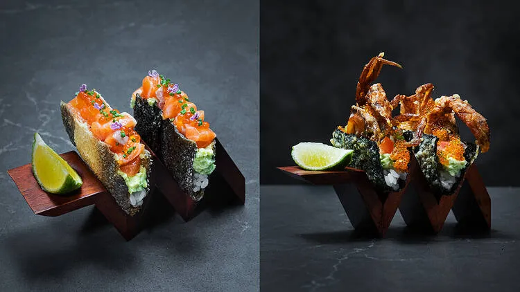 For an extra dose of flavour, dip each mouthful with three homemade sauces. Yuzu tomatillo lends bright acidity, chipotle teriyaki is at once smoky and umami, while ghost reaper combines the heat from two of the spiciest peppers in the world. Or opt for the decadent uni and scallop ($32), where the creaminess from bafun uni is balanced with togarashi-spiced mayonnaise.