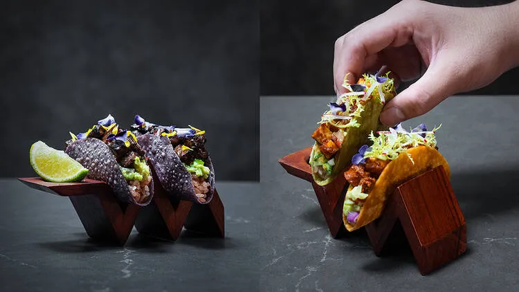 Salmon skin wrappers and tomato-stained tortilla. It is clear from the menu that this isn’t your usual Mexican joint. Mezcla is a modern taqueria that borrows Japanese influences from its sister concept, Rappu, to create a line-up of crunchy and over-the-top tacos.