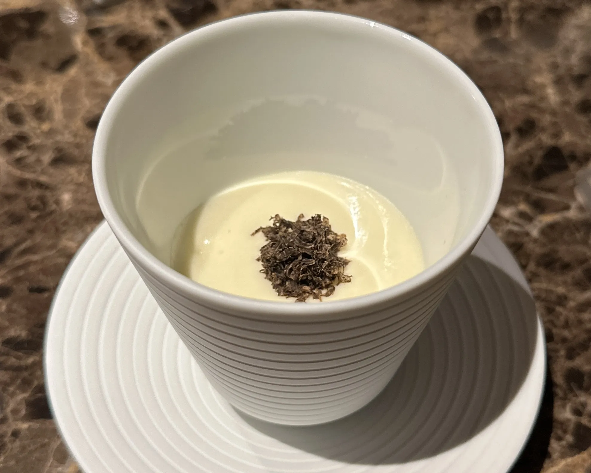 Chef Aitor surprises with a tropical coconut dessert – inspired by his childhood but also fitting for Singapore’s heat. Coconut flesh and coconut water gel provide a much-needed cooler from the heavy courses, and you’ll even find toppings of sago pearls for a local touch. Alternatively, you’ll be served the bergamot sorbet with freeze-dried yoghurt, and the chocolate parfait with cherry sorbet and an airy chocolate sponge.