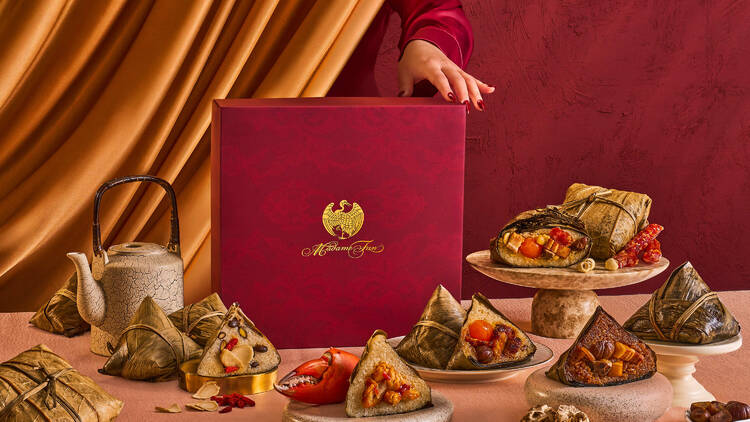 Jade at The Fullerton Hotel Singapore is back this year with its ever-popular Jade Classics Rice Dumpling Collection, this time with an extra-local twist. The latest creation is a chicken satay rice dumpling ($22) – a nod to the popular hawker dish, featuring chicken thigh, king oyster mushrooms, and peanuts, paired with a house-made satay sauce. Other premium flavours include the traditional Hong Kong-style abalone rice dumpling ($58) for sharing, and the vegetarian truffle five-grain rice dumpling ($20). The blue pea Nyonya ($18) and Hokkien salted egg yolk ($18) rice dumplings are also back this year by popular demand, for those who prefer to skip the modern iterations and stick with familiar flavours and ingredients.