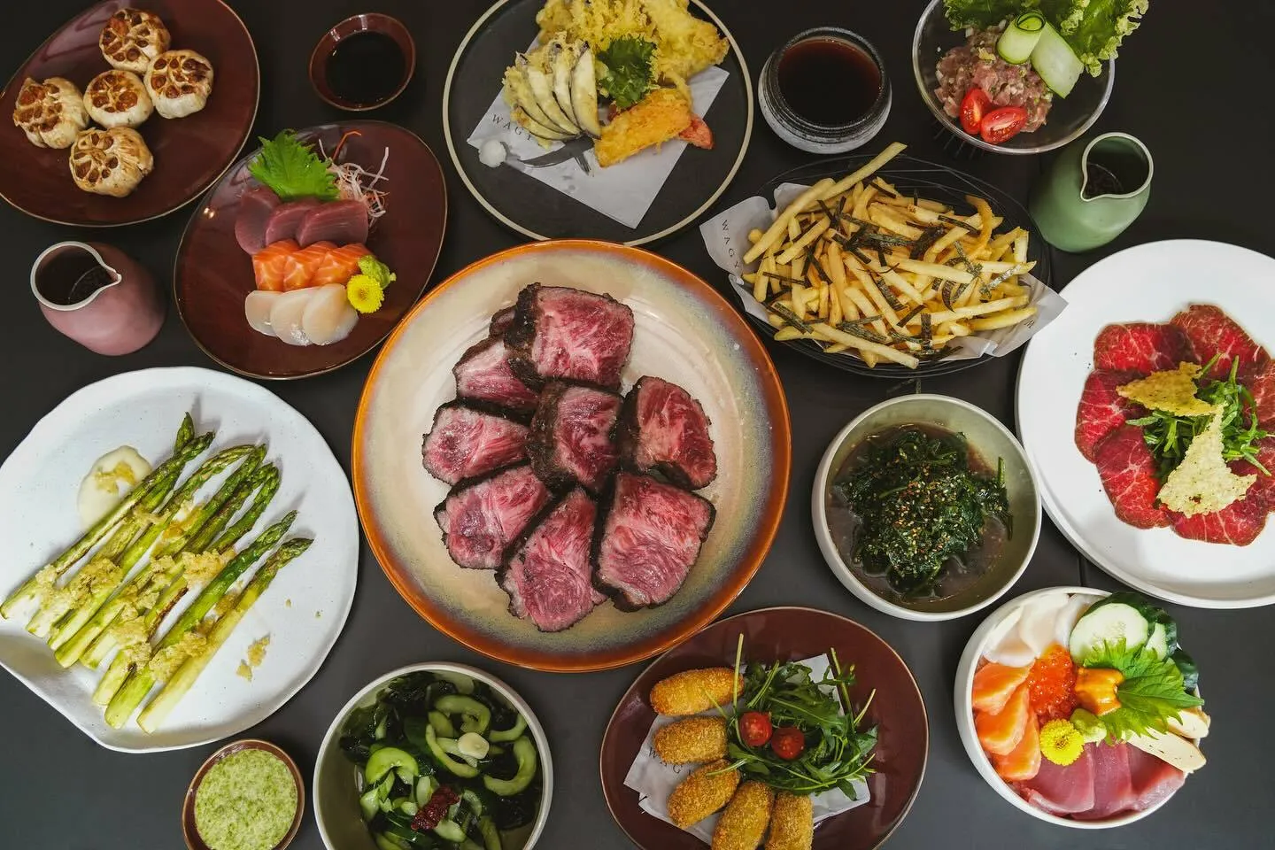 These slabs are then chargrilled over binchotan charcoal before being smoked in sakura wood fumes to bring out notes of fruits and cherries. The result: a perfectly crisp exterior with a juicy medium-rare finish on the inside. The steaks come served with garlic chips for an extra crunch, as well as pairing sauces like Japanese steak sauce, ponzu, or wasabi shoyu.
