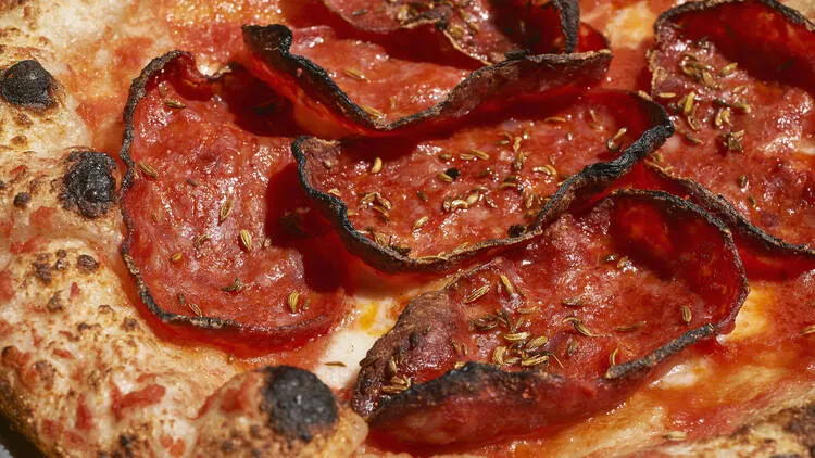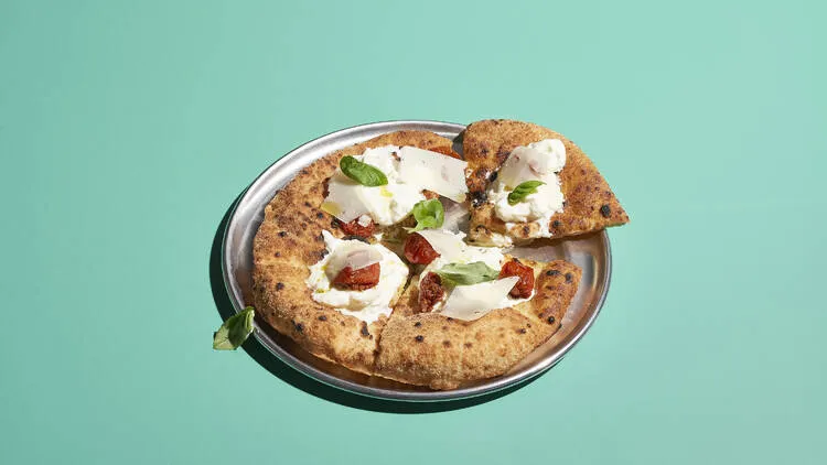 It begins with a 10-inch canvas, a chewy Naples-style base made deliberately smaller so over-ordering won’t pose as an issue. Over three days of fermentation is required to make the dough, which can then come assembled with bagna cauda, pickled onions, and kale ($18.50) that crisp up in the oven; a trio of cheeses ($19) that omits the funky gorgonzola for a pleasant creaminess; and circles of salami finished with Sichuan chilli honey for a tongue-tingly hit of spice.