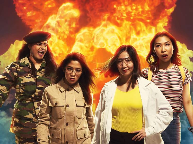 Checkpoint Theatre is back with a hilarious new comedy, The Nuclear Family, written and directed by Huzir Sulaiman. A follow-up to his classic 1998 comedy Atomic Jaya, this political satire features a stellar all-female cast: Jo Tan, Rebekah Sangeetha Dorai, Munah Bagharib, and Amanda Tee, taking on more than 30 zany characters and musical numbers by electronic duo, .gif.