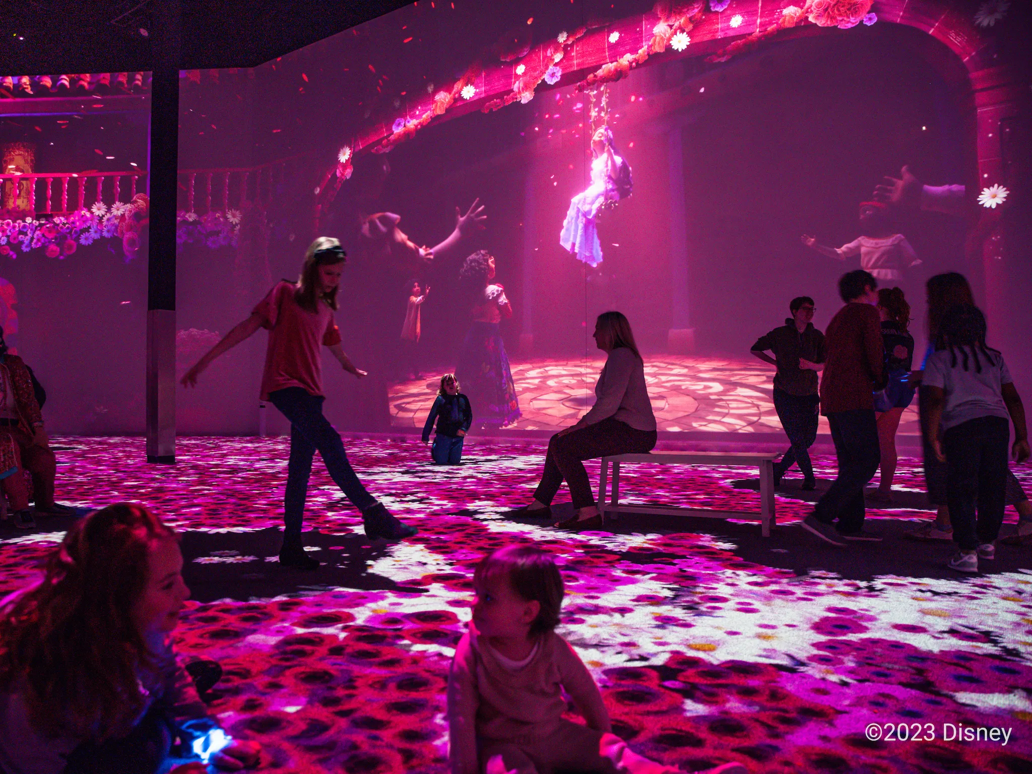 The gallery area is where the magic happens. This 360-degree environment takes you from the Disney Renaissance period to latest film hits. See iconic scenes from Frozen, Big Hero 3, The Little Mermaid, Lion King and more play out across gigantic screens, and experience nostalgic songs in full surround sound. And watch your step! An interactive floor projection design illuminates your every move, adding an extra sprinkle of wonder in true Disney form.