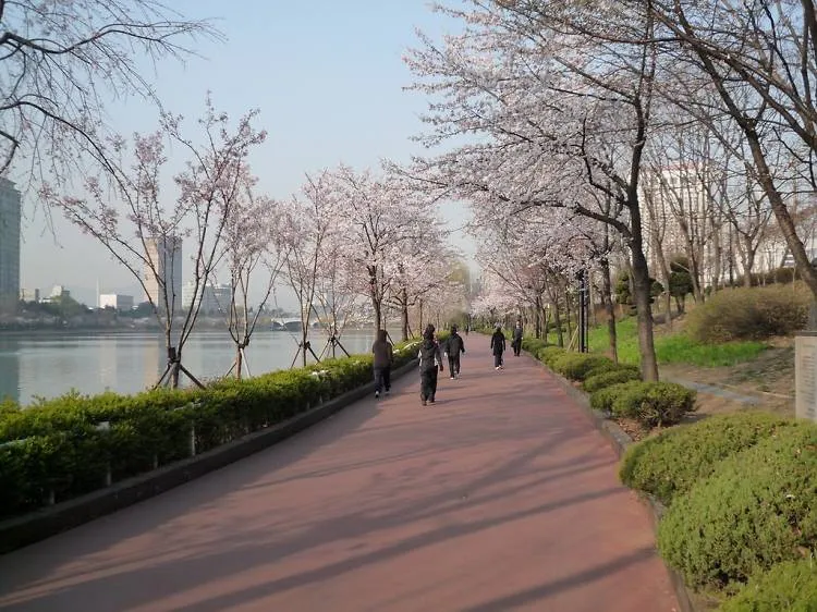 The landscape of Seokchon Lake is surrounded by azaleas, cherry blossoms and ample greenery. The colourful flowers offer a refreshing stroll, perfect for the start of the day. There’s also a view of Lotte World Tower, the tallest building in Seoul, and Lotte World Magic Island, an outdoor amusement park.